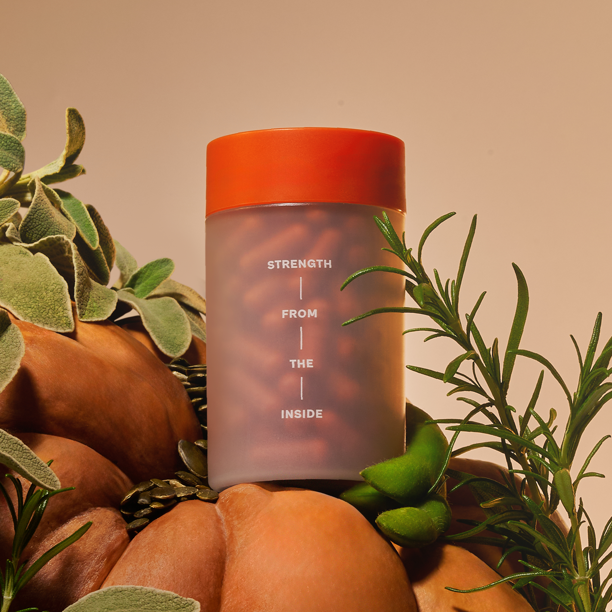The wordmark evolved into confident capitals with muscular forms, the orange became a deeper, more premium shade with greater impact at shelf, and a system of 3D ingredient icons now makes the science and potency clear.